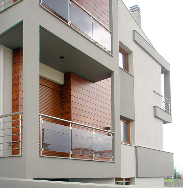 Κάγκελα αλουμινίου ανοδιομένα, με κρύσταλλα triplex – φιμέ