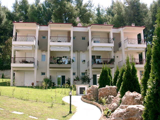The complex is built on private land which is bordered with a pine trees area , close to the center of the village Siviri and consists of 48 sq.m. to 63 sq.m. apartments and 66 sq.m. to 110 sq.m. maisonettes.